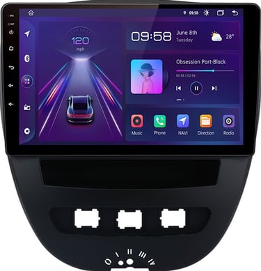 Upgrade your Peugeot 107, Citroën C1, or Toyota Aygo with this touchscreen unit featuring Android Auto and Apple CarPlay. It’s a perfect fit, adds modern functionality like navigation, music, and hands-free calls - all in one clean, easy-to-use screen.